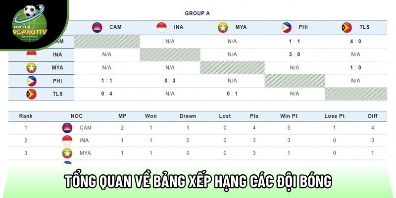 Giới thiệu sơ lược vài thông tin về bảng xếp hạng bóng đá